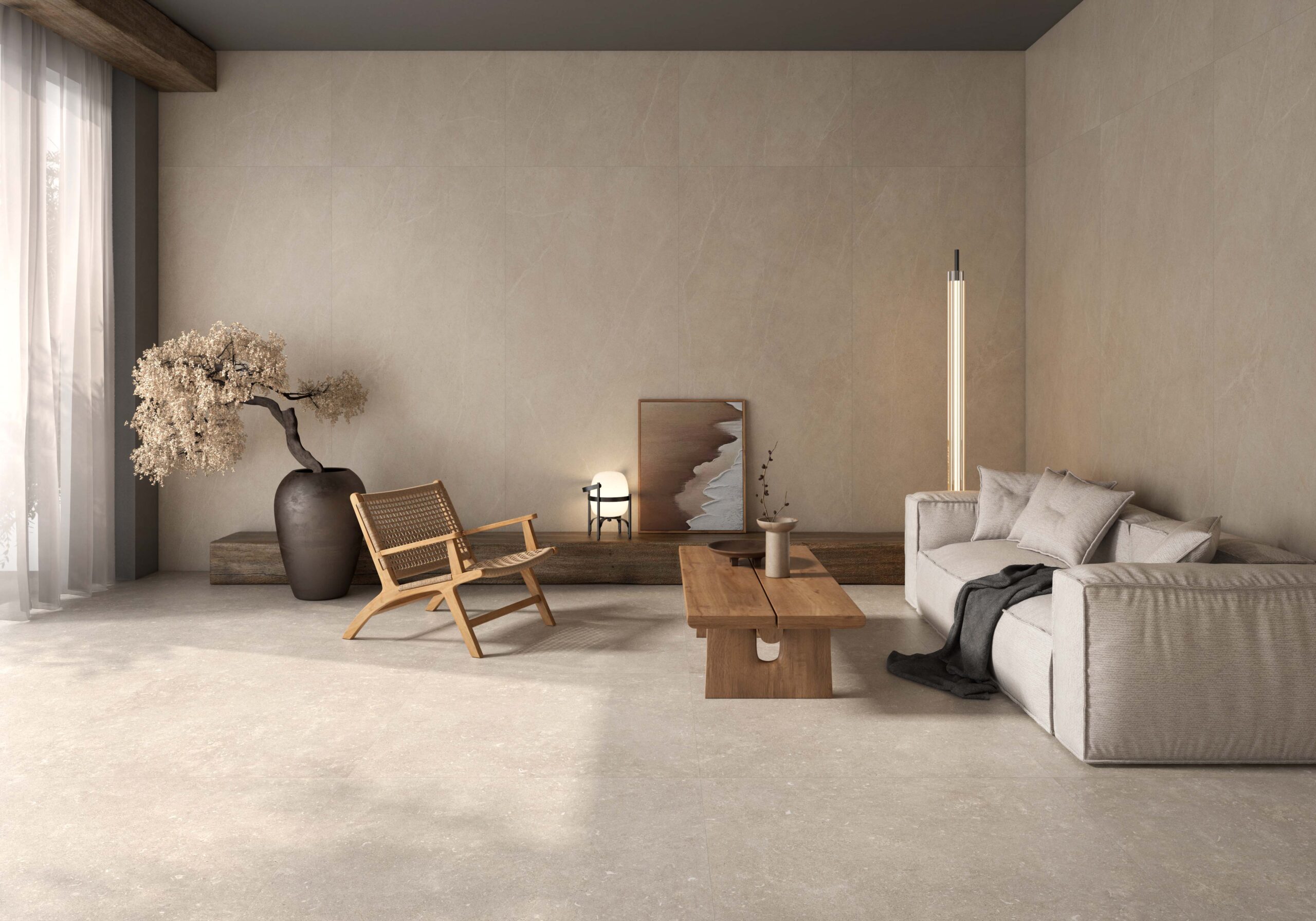 En 2026, se imponen los tonos naturales y los acabados que evocan materiales esenciales de la arquitectura contemporánea: la piedra, con propuestas como nuestra colección estrella Core Tech; la madera, reinterpretada en series como Kalon; o el cemento, presente en clásicos atemporales como Bogart. La cerámica juega aquí un papel protagonista, combinando diseño, resistencia y una estética que conecta con la naturaleza y la arquitectura contemporánea. - El volumen: las piezas principales